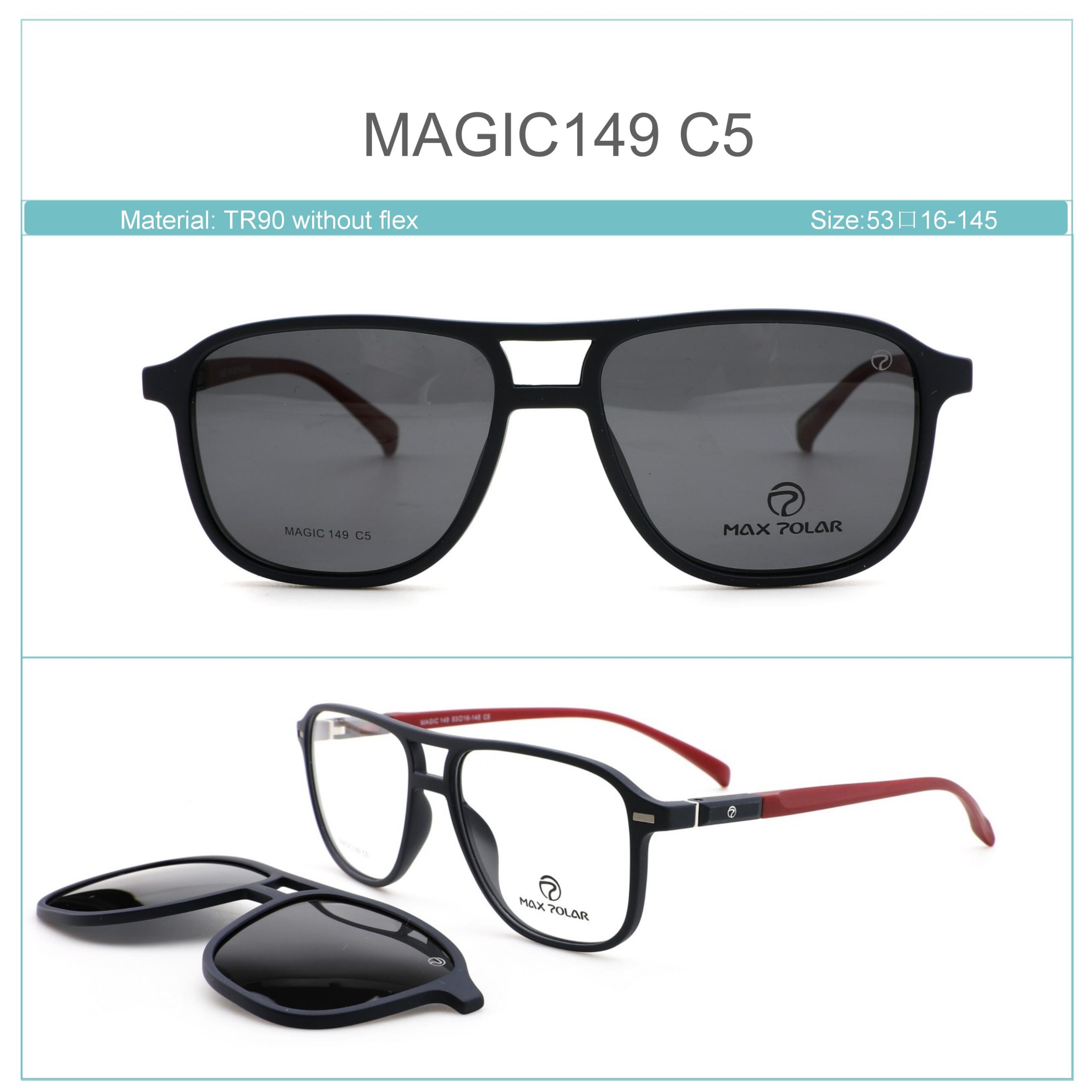 Armazón de TR90 con clipon magnético polarizado