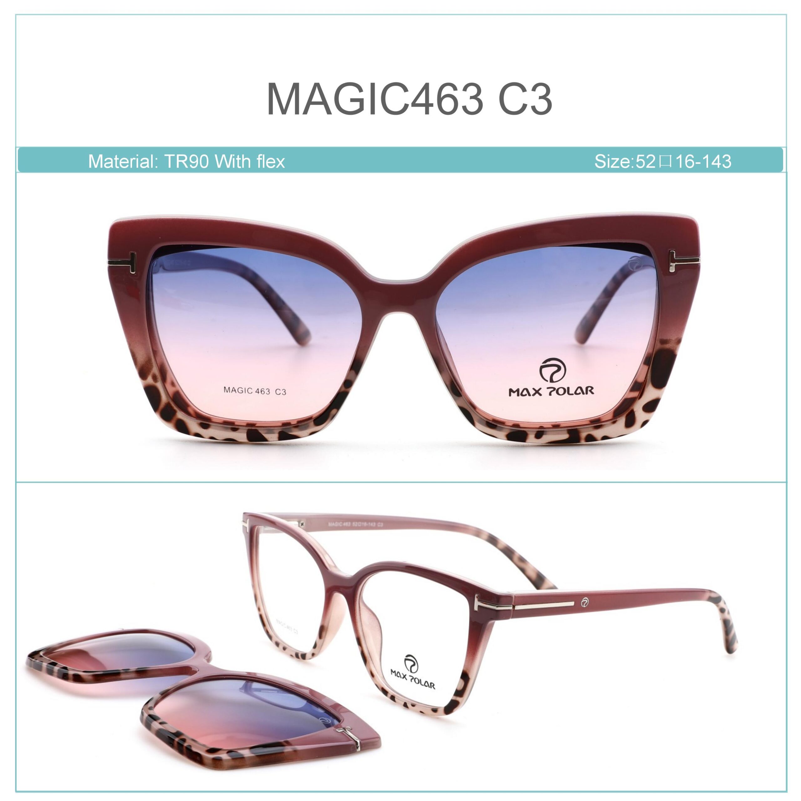 Armazón de acetato con bisagra flexible y clipon magnético polarizado